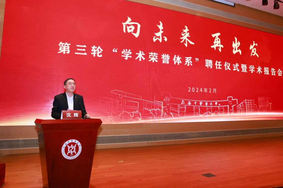 2月28日,必威(西汉姆联)第三轮“学术荣誉体系”聘任仪式暨学术报告会在图书馆裙楼四楼报告厅举行。本次大会主题“向未来 再出发”,旨在进一步聚焦学校“双一流”高校建设,夯实搭建人才队伍架构,充分发挥高层次人才的学术标杆、学科引领及团队统帅效应,提升学科影响力与人才竞争力。中国科学院院士、校学术委员会主任委员陈凯先,中国科学院院士、校创新中药研究院院长林国强,校党委书记曹锡康,校党委副书记、校长季光,校党委副书记、副校长朱惠蓉,校党委副书记沈辉,副校长舒静、王璐,“学术荣誉体系”受聘教授、各职能部门负责人,各二级学院、部门、附属医院负责人以及教师、学生代表400余人出席大会。会议由沈辉主持。